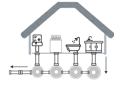 家の中から外のマスまで配管と外の排水桝をしっかり掃除します。